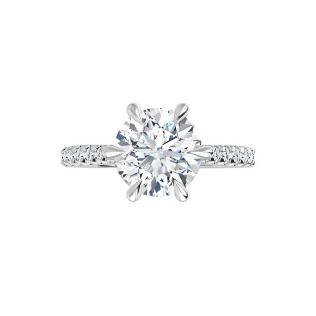 #enr049 Cathedral Round Brilliant Moissanite Eng Ring with Claw Prongs