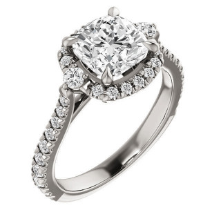 #enr051-cu Cushion Moissanite Cathedral Halo Engagement Ring with Claw Prongs