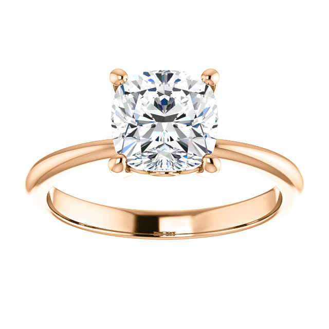 #enr053-cu Cushion cut Moissanite Solitaire with Scroll Accent Basket Design
