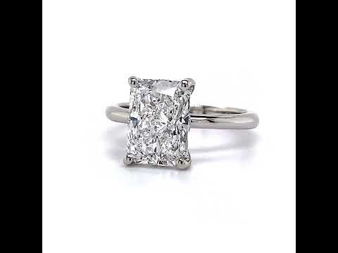 #enr053-em Emerald / Radiant cut Moissanite Solitaire with Scroll Accent Basket Design