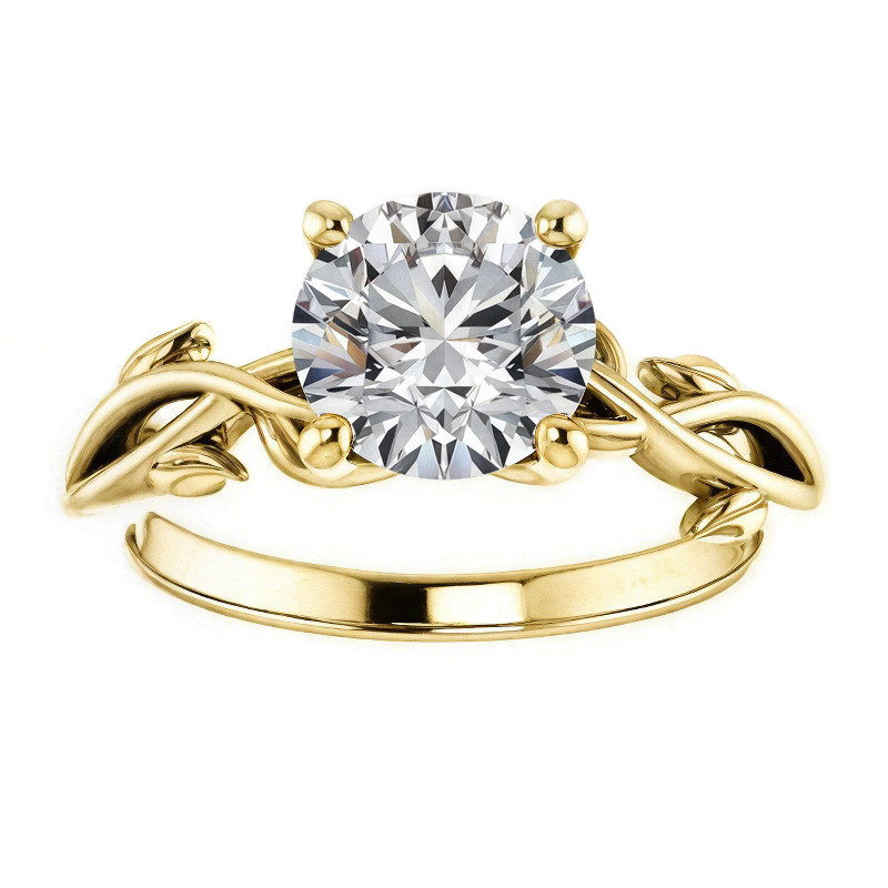 #enr056 Round Brilliant Moissanite Solitaire Ring With Floral Accents