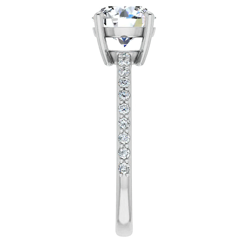 To make it even more special, there's an optional matching band with 0.27ct of round brilliant Moissanite side stones available that perfectly complements the engagement ring.