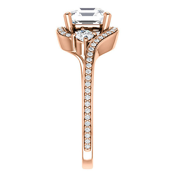 #enr112-ash Asscher Accented Bypass Halo Engagement Ring