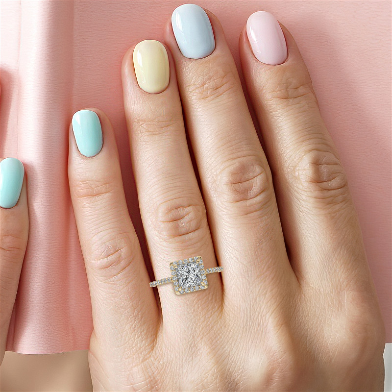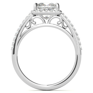 #enr126-pr Princess cut Petite Halo Engagement Ring with Scroll Accent
