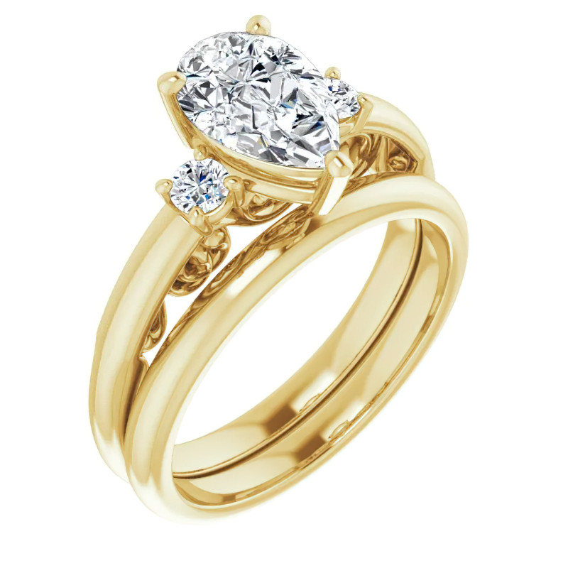 Featuring Side Stones, Three Stone, Scroll and Two-Tone from our Engagement Rings collection. Model #enr128-pear is available in 22 brilliant center stone options, 3 fine sidestone options, and your choice of 7 eco-friendly precious metals.