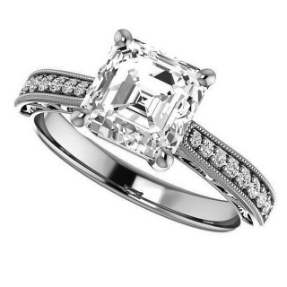 #enr138-ash Asscher cut Engraved Engagement Ring with Milgrain