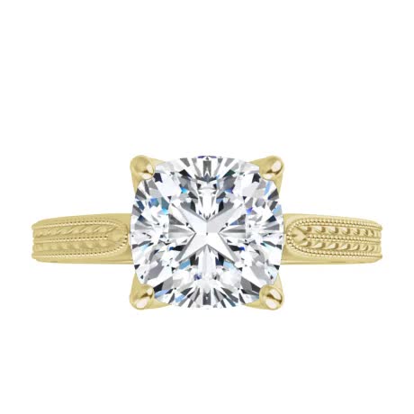 #enr143-cu Cushion Vintage-Style Engraved Solitaire Ring with Tulip Prongs
