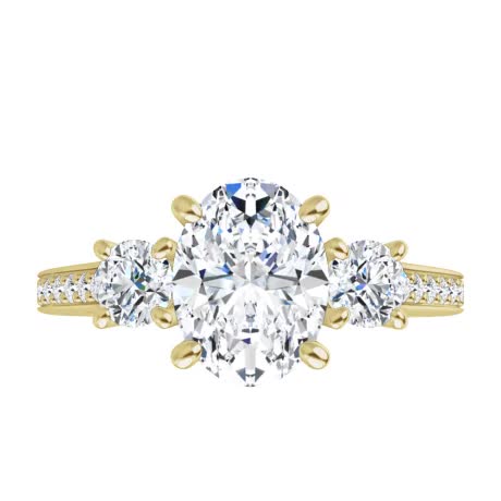 #enr163-ov Oval & Round Three-Stone Moissanite Cathedral Engagement Ring