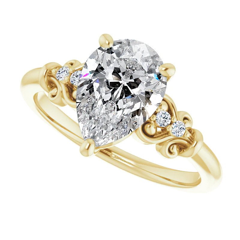 Featuring Scroll, Petite and Side Stones from our Engagement Rings collection. Model #enr167-pear is available in 22 brilliant center stone options, 1 fine sidestone option, and your choice of 6 eco-friendly precious metals.