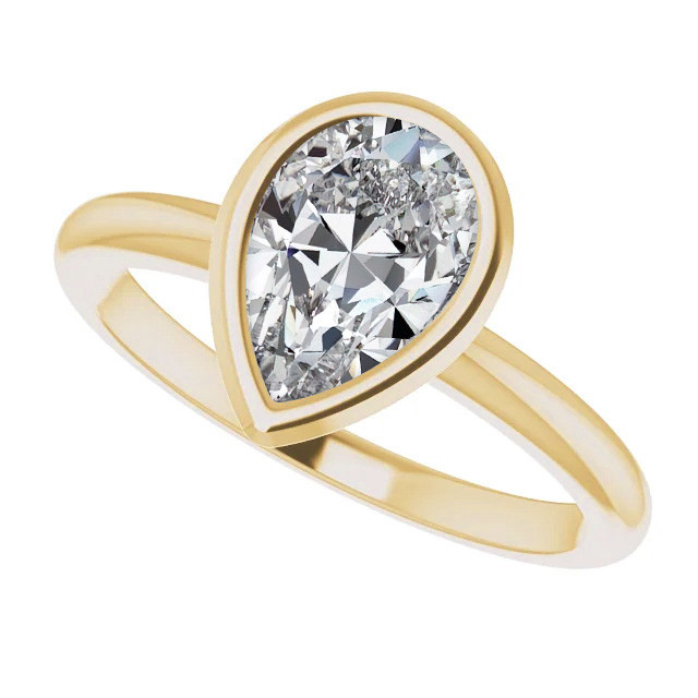 #enr173-pear Pear Cut Moissanite Bezel Solitaire Ring
