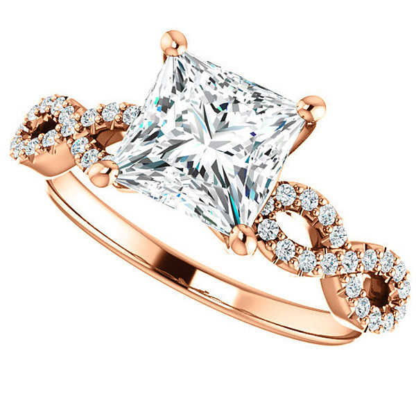 #enr183-pr Princess cut Moissanite & Diamond Infinity Engagement Ring