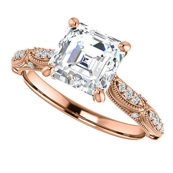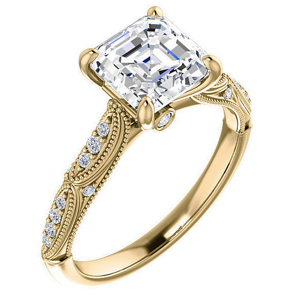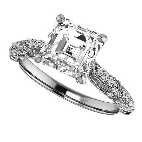 #enr190-ash Asscher Moissanite Scalloped Engagement Ring with Milgrain
