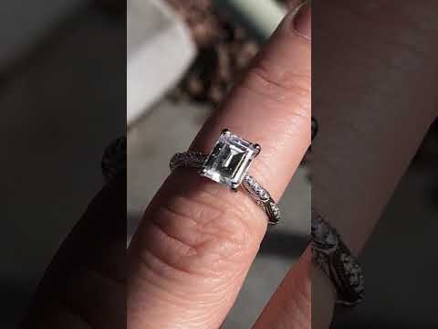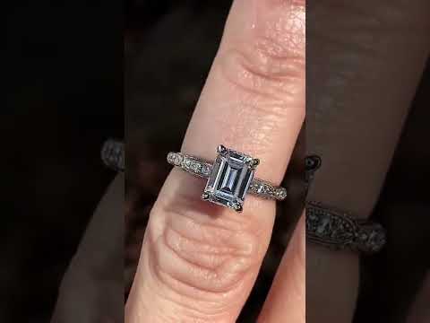 #enr190-em Emerald / Radiant Cathedral Milgrain Engagement Ring