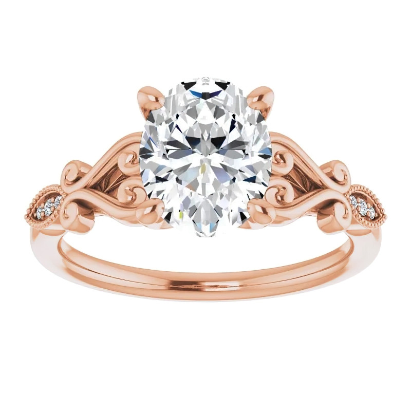 #enr193-ov Oval Scroll Accent Engagement Ring with Milgrain