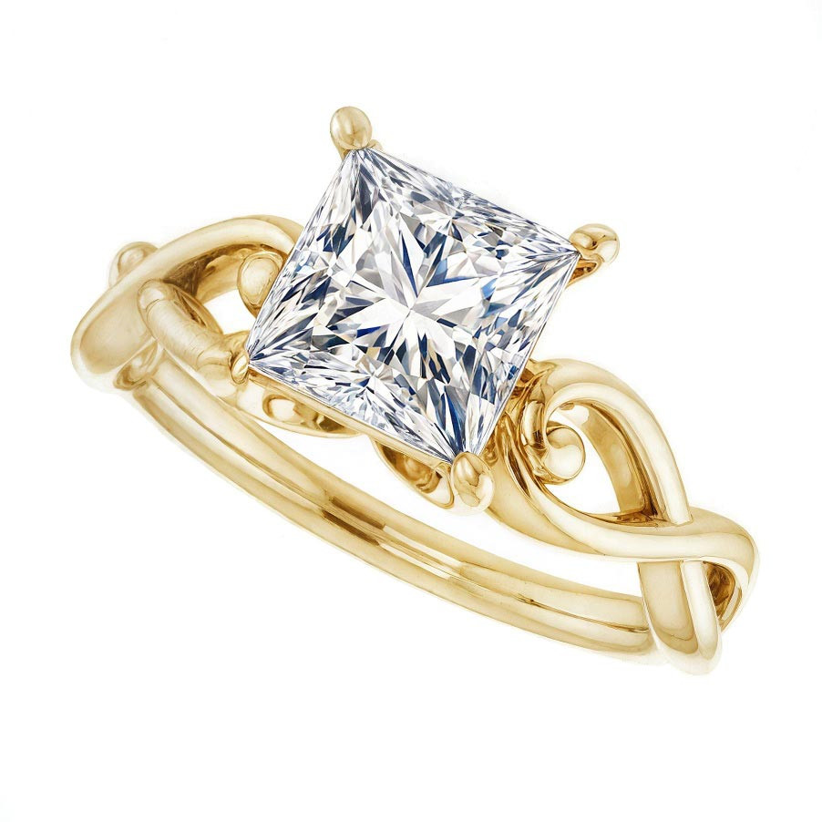 #enr197-pr Princess Moissanite Twisted Scroll Solitaire Ring