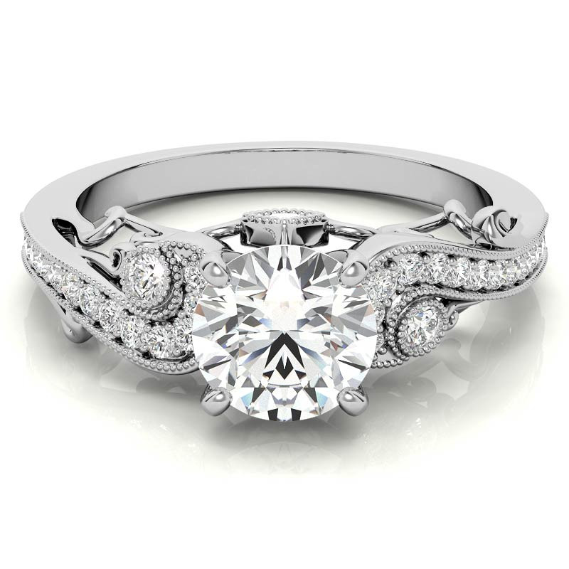 #enr204 Antique Moissanite Engagement Ring with Milgrain Accents