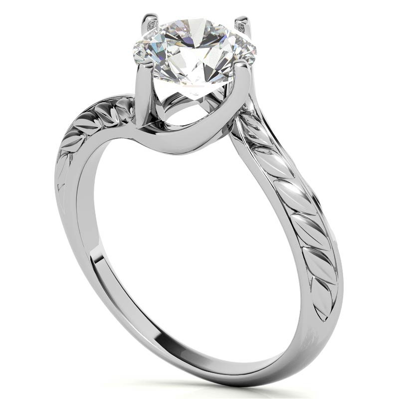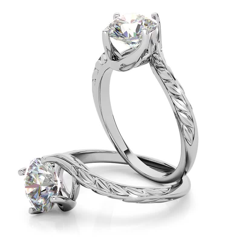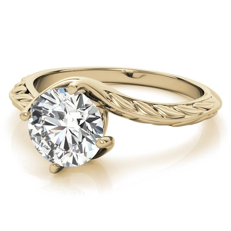 #enr215 Round Brilliant Antique Etched Bypass Moissanite Solitaire Ring