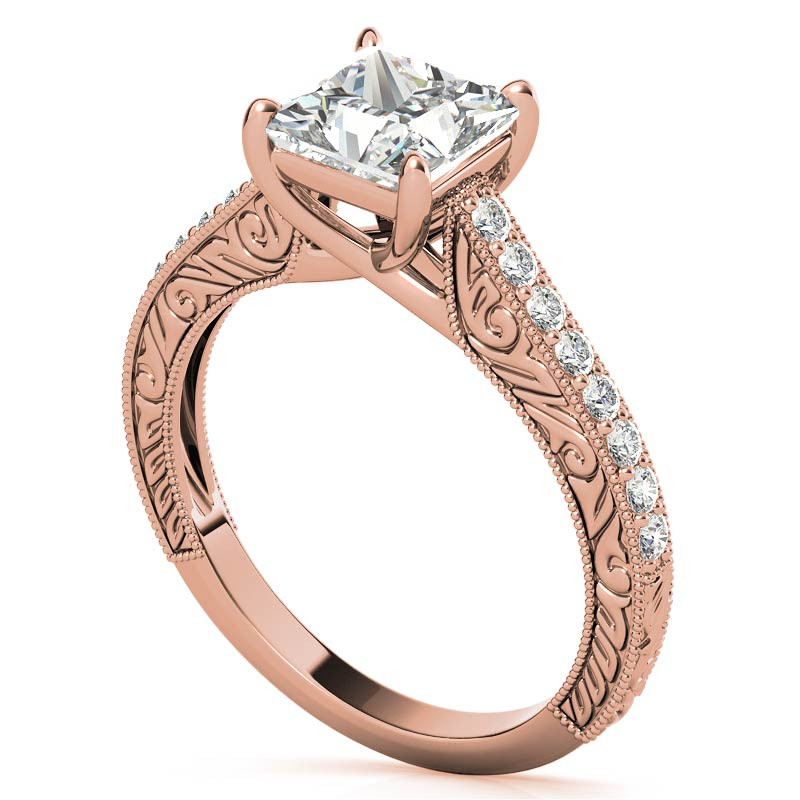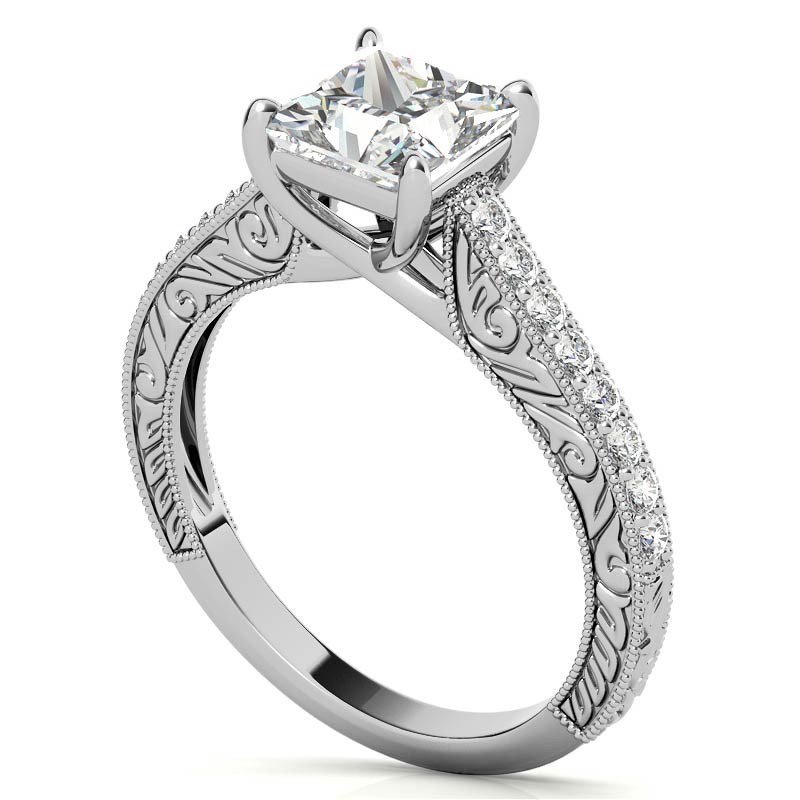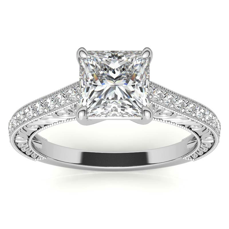 #enr226 Princess cut Moissanite Antique Trellis Engagement Ring