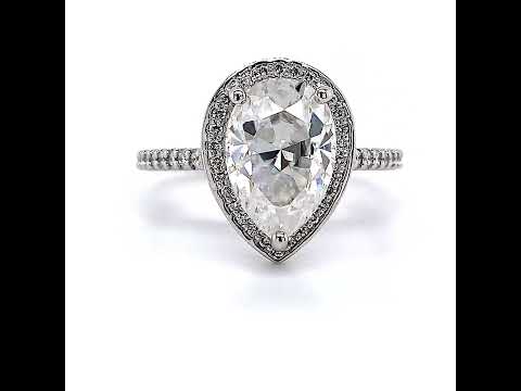 The pear cut colorless Moissanite center stone steals the spotlight, perfectly complemented by 0.30ct - 0.34ct Moissanite side stones that add a touch of dazzling brilliance. And with your choice of 14k gold, 18k gold, or platinum, you can create a ring that perfectly matches your style and personality.