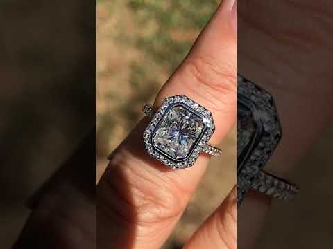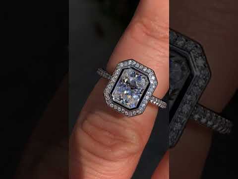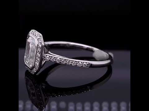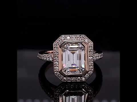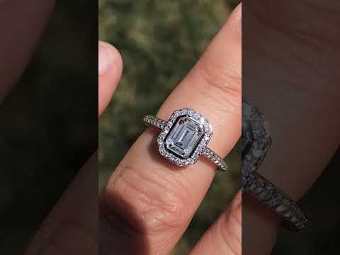 #enr321-em Emerald cut Moissanite Bezel Halo Engagement Ring