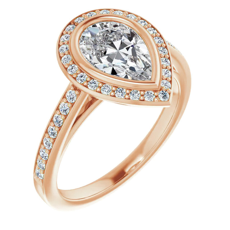 #enr321-pear Pear Moissanite Bezel Set Halo Style Engagement Ring