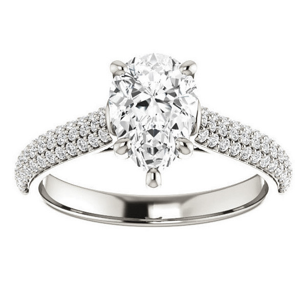 Featuring Pave, Cathedral and Side Stones from our Engagement Rings collection. Model #enr338-pear is available in 18 brilliant center stone options, 1 fine sidestone option, and your choice of 6 eco-friendly precious metals.