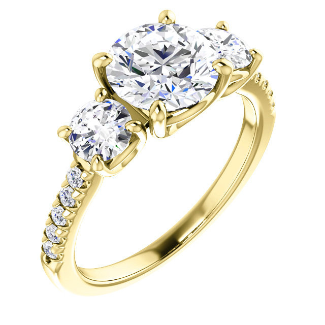 #enr350 Round Brilliant Moissanite 3-Stone Engagement Ring