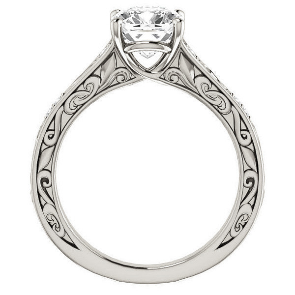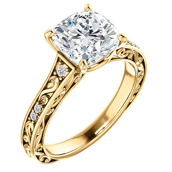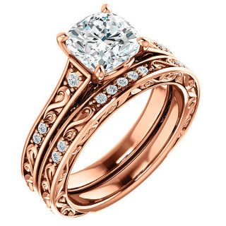 #enr392-cu Cushion cut Moissanite Engagement Ring with Floral Accents