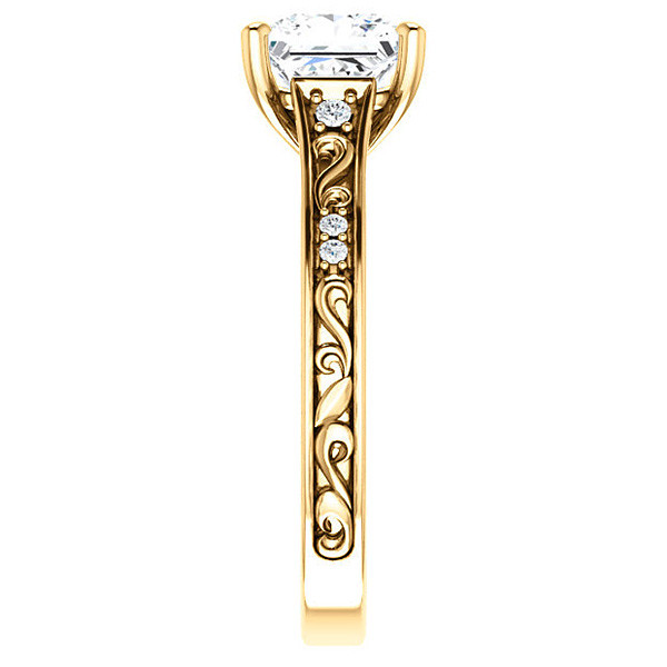 #enr392-pr Princess Moissanite Engagement Ring with Floral Design