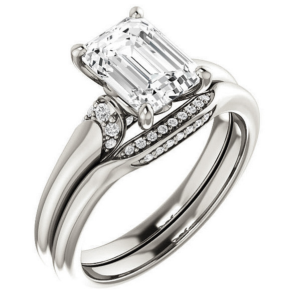 #enr399-em Emerald / Radiant Moissanite Accented Engagement Ring