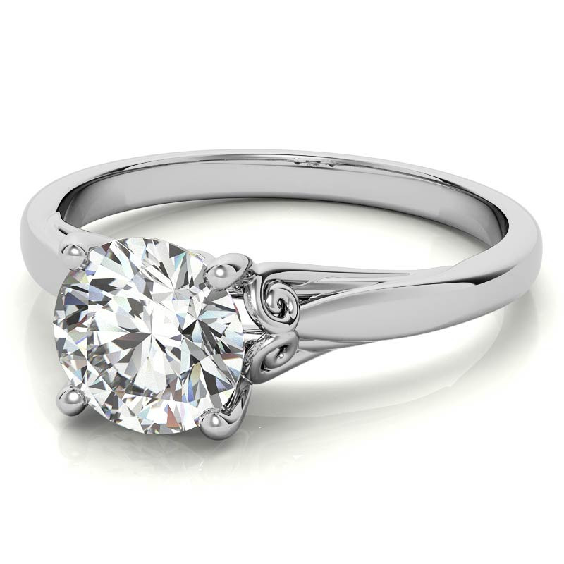#enr428 Round Scroll Moissanite Solitaire Ring with Surprise Diamond