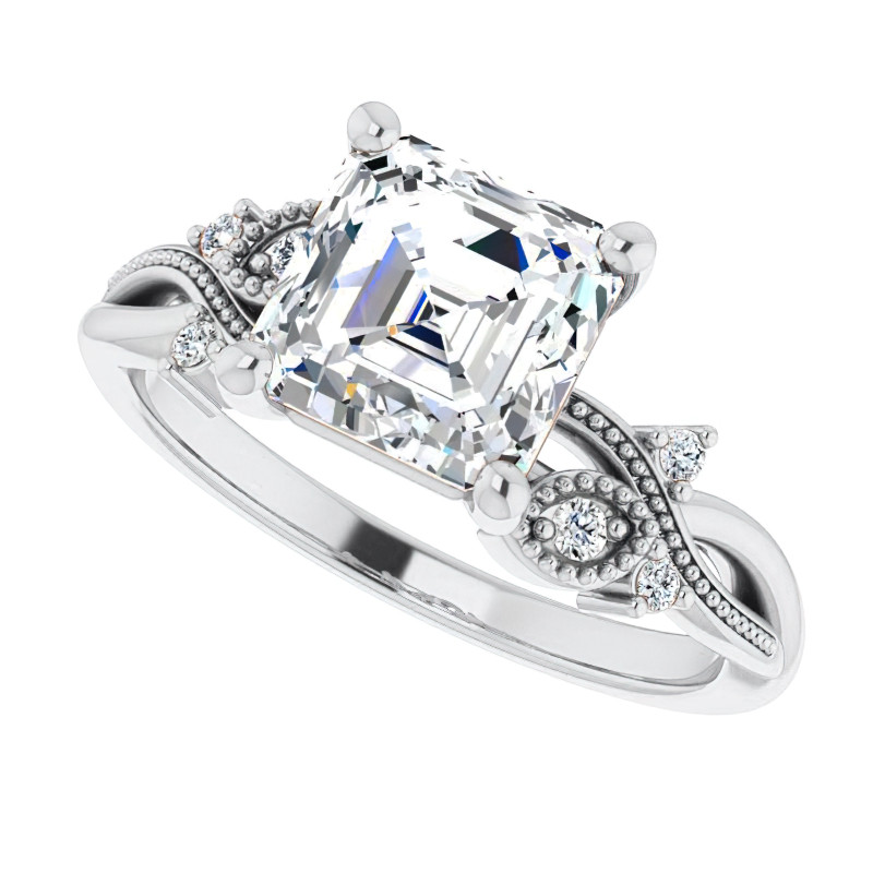 #enr443-ash Asscher Floral Inspired Infinity Moissanite Engagement Ring with Milgrain
