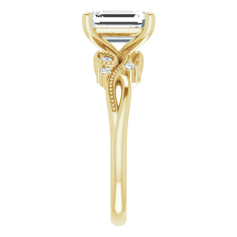 #enr443-em Emerald / Radiant Floral Inspired Infinity Moissanite Engagement Ring with Milgrain