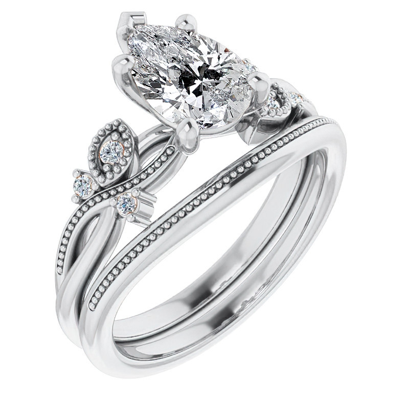 Featuring Side Stones, Antique, Nature, Infinity, Split Shank and Milgrain from our Engagement Rings collection. Model #enr443-pear is available in 22 brilliant center stone options, 2 fine sidestone options, and your choice of 6 eco-friendly precious metals.