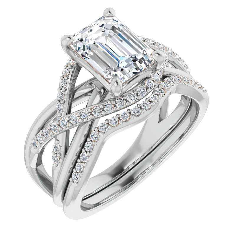 #enr450-em Multi-Band Emerald / Radiant Moissanite Infinity Engagement Ring