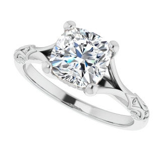 #enr451-cu Cushion Moissanite Scroll Accent Cathedral Engagement Ring