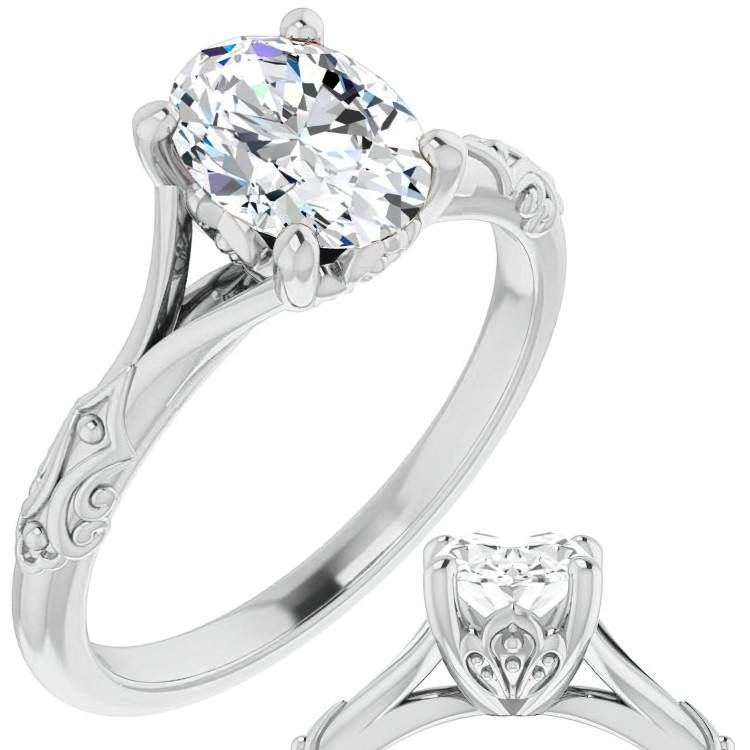 #enr451-ov Oval Moissanite Scroll Accent Cathedral Engagement Ring
