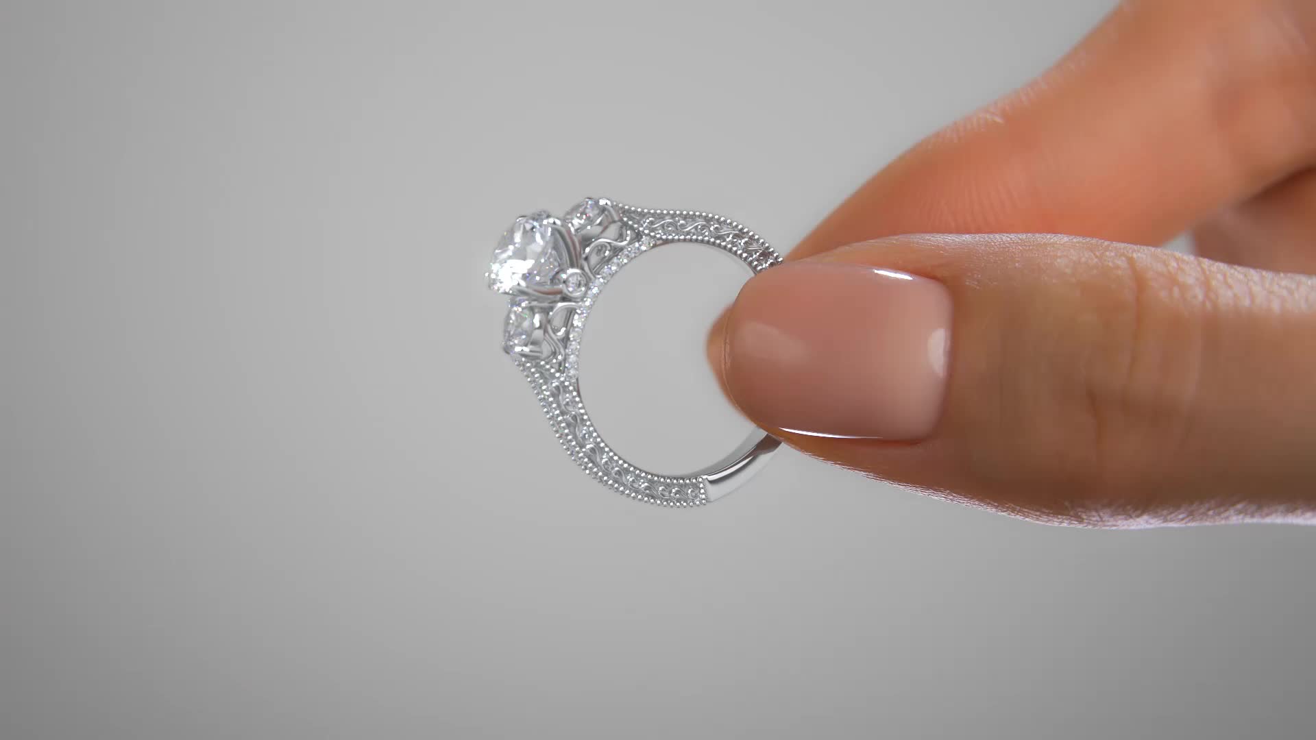 Featuring Side Stones, Three Stone, Antique, Cathedral, Scroll, Milgrain and Surprise Diamond from our Engagement Rings collection. Model #enr502 is available in 74 brilliant center stone options, 2 fine sidestone options, and your choice of 6 eco-friendly precious metals.