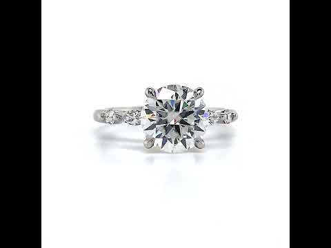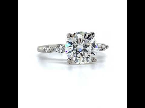Indulge in the exquisite beauty of this remarkable engagement ring, showcasing a stunning shared prong scalloped band design. Enhancing its allure are two elegant 2mm/0.03ct round diamonds and two exquisite 4x2mm/0.08ct marquise cut diamond accent stones.