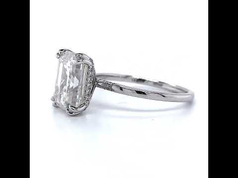 #enr541-em Double Prong Emerald / Radiant Moissanite Engagement Ring with Hidden Halo