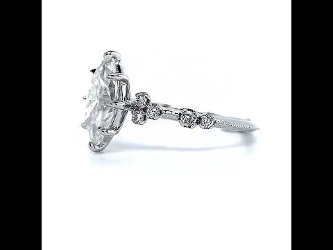 The bands of this enchanting ring are adorned with 0.22ct of round brilliant Moissanite accent stones . These exquisite gems, coupled with intricate milgrain accents, impart a sense of opulence and refinement to the design, further enhancing its allure.