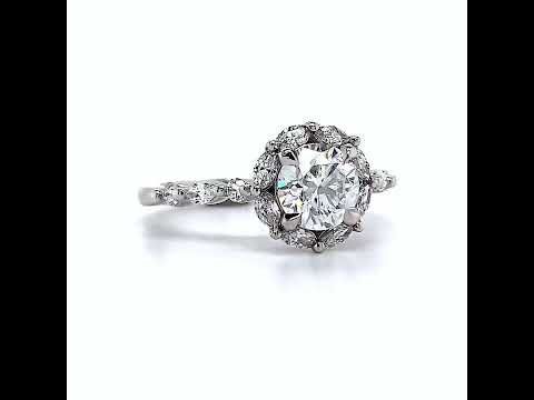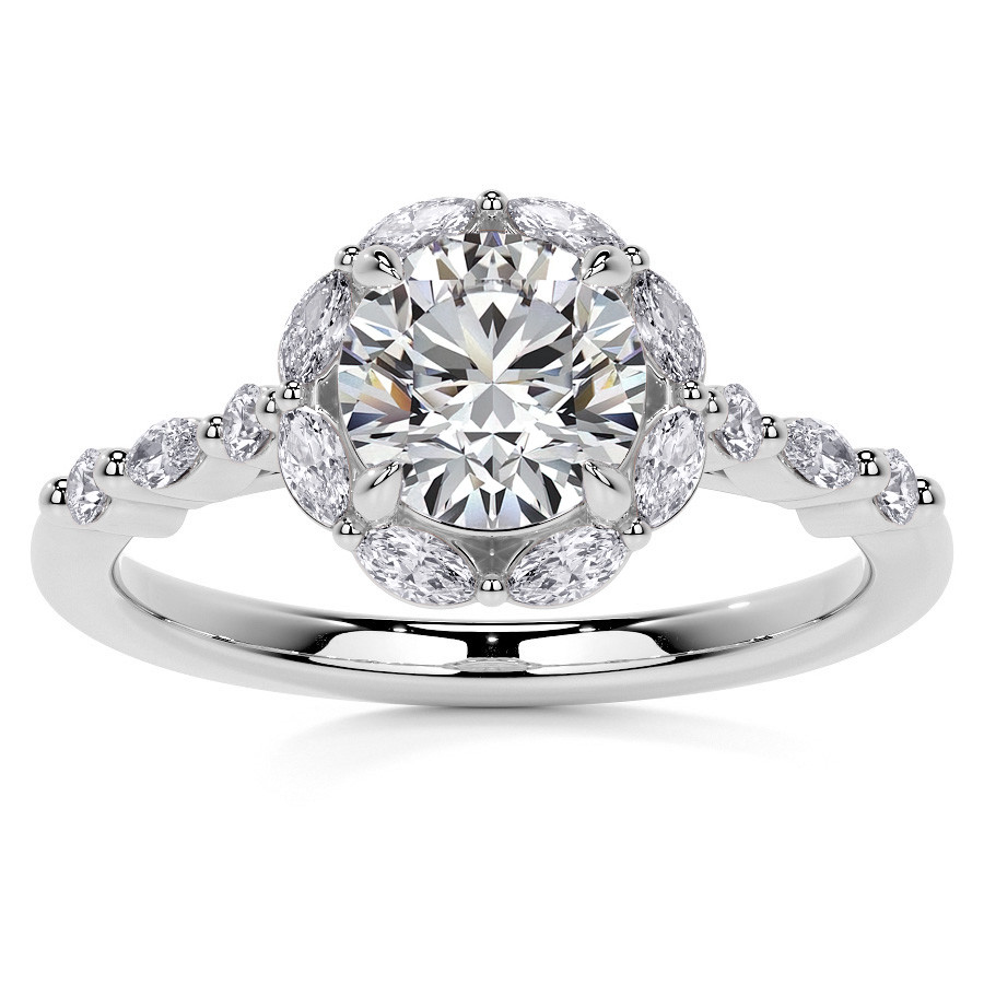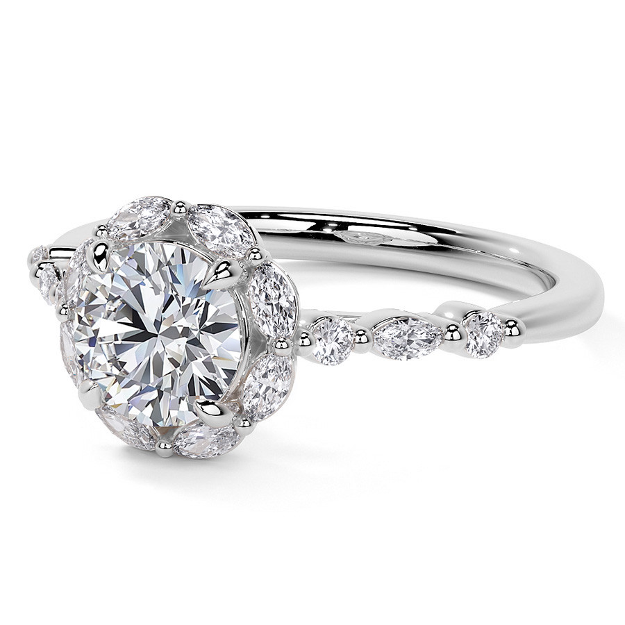 #enr553 Round and Marquise Halo Moissanite Cathedral Engagement Ring