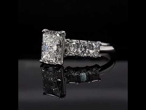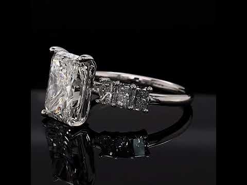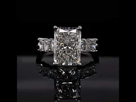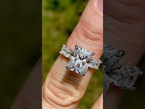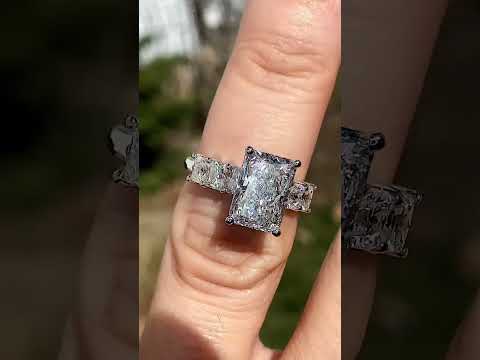 #enr555-em Emerald / Radiant Shared Prong Moissanite Engagement Ring