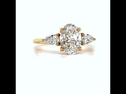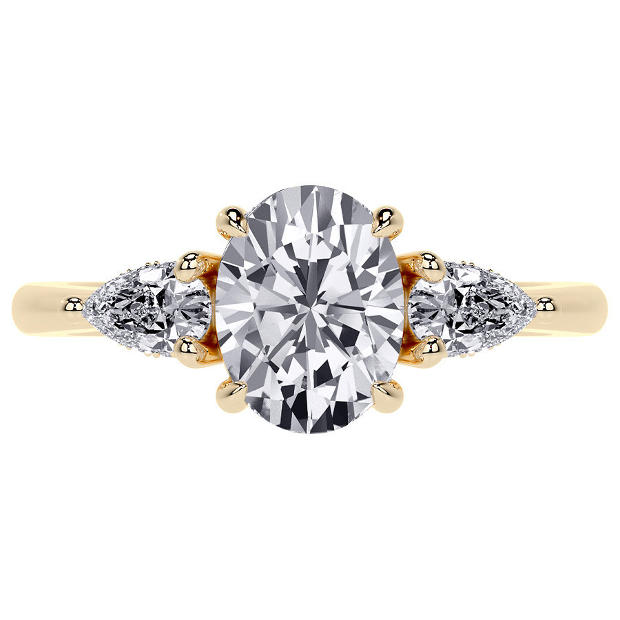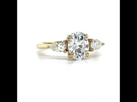 #enr557-ov Oval and Pear 3-Stone Moissanite Engagement Ring with Hidden Hal