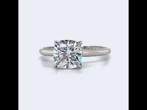 #enr559-cu Cushion Cathedral Moissanite Engagement Ring with Hidden Halo
