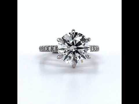 Crafted with intricate details and an elegant design, this piece is truly captivating. The round brilliant cut center stone is held securely in place by six expertly crafted prongs, showcasing its natural beauty and brilliance.