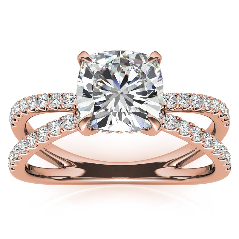 #enr626-cu Split Shank Hidden Halo Cushion Moissanite Engagement Ring