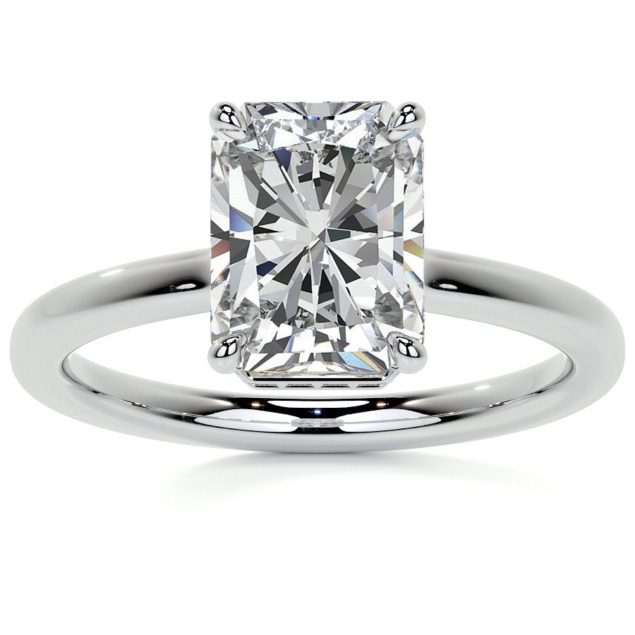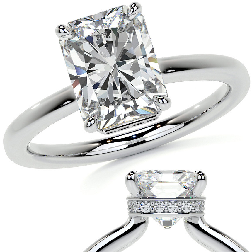 #enr627-em Emerald/Radiant 4-Prong Hidden Halo Moissanite Engagement Ring