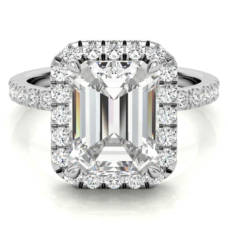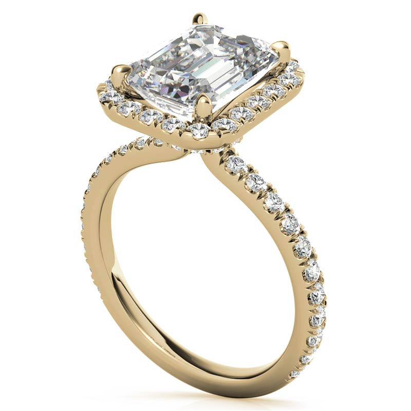 #enr650 Emerald / Radiant Halo Moissanite Engagement Ring with Hidden Collar