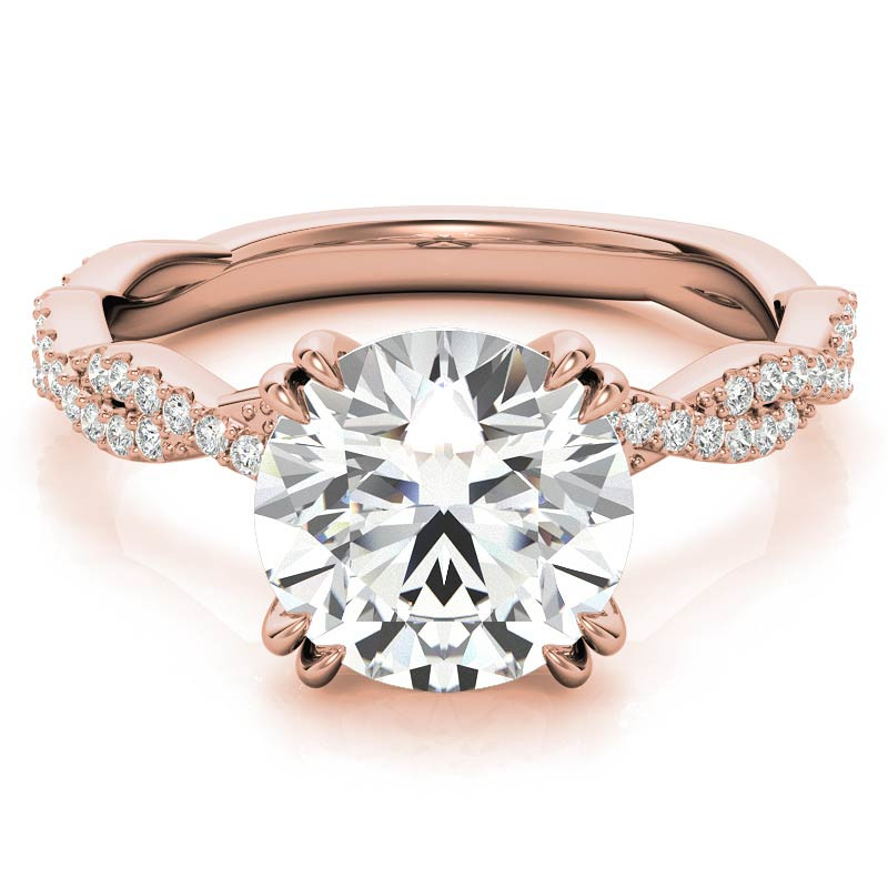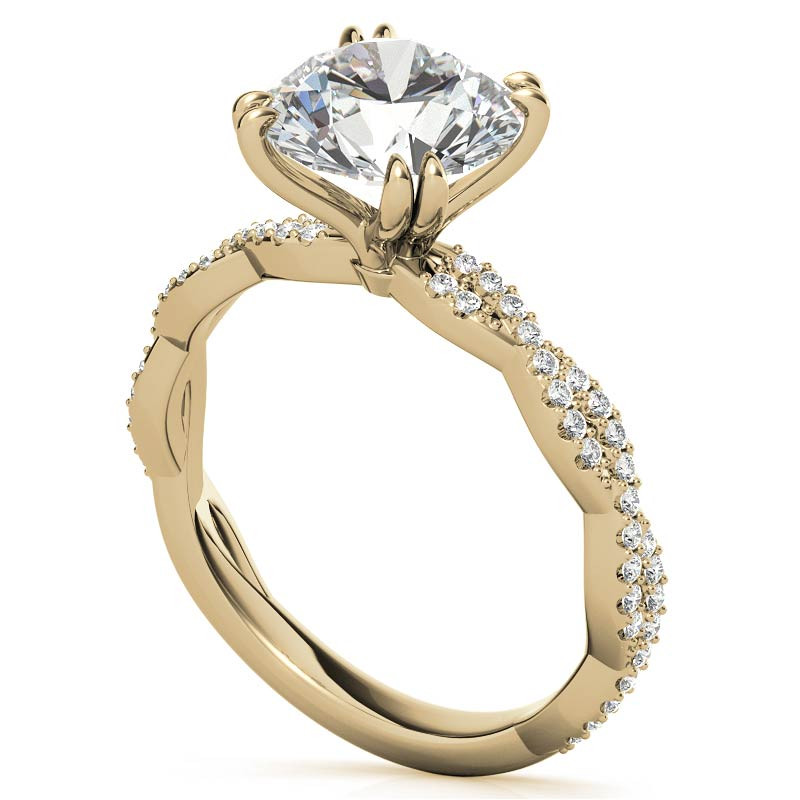 Experience the essence of eternal love with our stunning engagement ring that boasts a captivating infinity-style twisted band adorned with 0.28ct of glistening round accent stones.